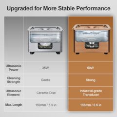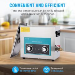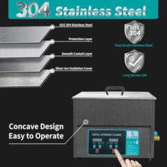 Click for More Images Digital Control Panel?The Cleaning machine features a digital display for precise time and temperature control. With a heating capacity up to 80°C(176°F), adjustable timer from 1-30 minutes.60W ultrasonic power and 40KHz...