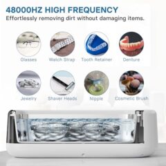 Click for More Images Powerful 48kHz Ultrasonic Technology Experience deep cleaning with 48,000Hz ultrasonic waves that remove 99% of bacteria, plaque, and stains from dental appliances and jewelry. No harsh chemicals or scrubbing required,...