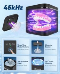 Click for More Images ?Professional Ultrasonic Cleaner for Dental Appliances???- Safely cleans retainers, aligners, night guards, and dentures using 48KHz ultrasonic waves, reaching even hard-to-clean areas for a thorough refresh?Multi-Purpose...