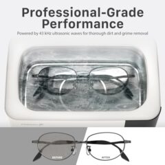 Click for More Images ADVANCED ULTRASONIC TECHNOLOGY: Powered by high-frequency 50,000Hz ultrasonic vibrations, this cleaner generates millions of nano-sized bubbles that reach into tiny crevices and hidden areas to lift away dirt, stains, and...