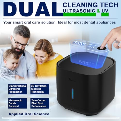 Temperature Control: Featuring upgraded heating and temperature control, retainer cleaner machine is equipped with 4 powerful U-V lights that work in tandem with ultrasonic waves to provide a more effective and thorough clean. Bid farewell to odors and stains, making your retainers, aligners, dentures, night guards, or mouth guards not only cleaner but also safer