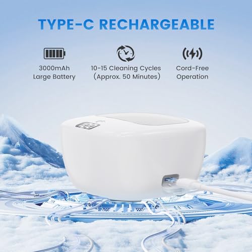 Ultrasonic Retainer Cleaner Machine | Rechargeable | Cordless | IPX7 Waterproof | Portable | 120ML | 2 Modes with Digital Timer for | Denture | Aligner | Night Guard | Mouth Guard | Jewelry | White