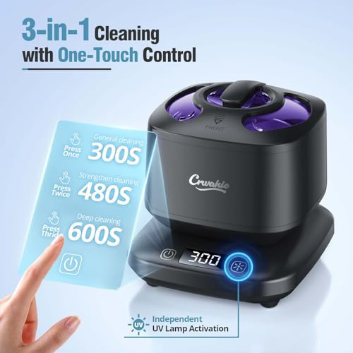 Click for More Images 3-in-1 Design – Clean, UV & Dry: Our ultrasonic retainer cleaner combines 3 key functions in one device to meet all your dental appliance cleanliness needs. It uses ultrasonic waves for deep cleaning, UV light to eliminate...