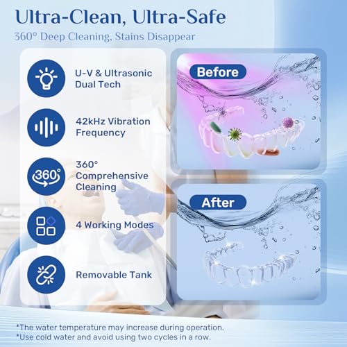 Click for More Images Advanced Ultrasonic Cleaning Technology: The retainer cleaner machine generates millions of tiny cleaning bubbles that penetrate deep into crevices and grooves, Bring a refreshing cleaning experience to your braces,...