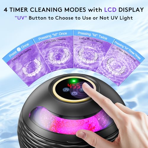 Upgraded Cleaner – The ultrasonic denture cleaner employs high-frequency 45kHz sound waves and 25W ultrasonic powered, with 4 LED UV lights.