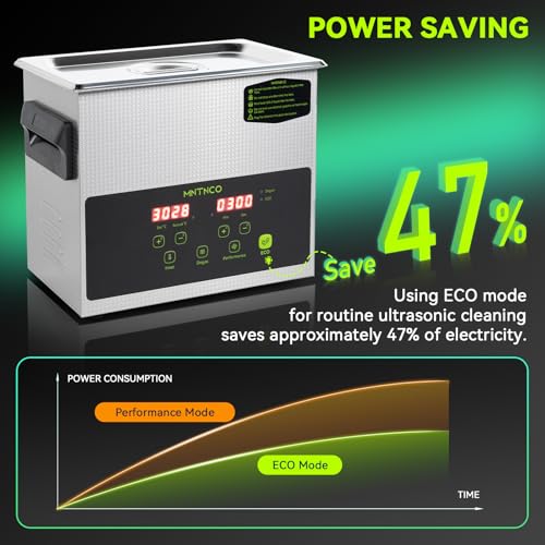 MNTNCO 3L Commercial Ultrasonic Cleaner, ECO Mode, Heating, Degas Mode, ECO Energy-Saving Ultrasonic Cleaning Machine Excellent for Labs,Carburetor,Jewelry,Dentures,Automotive & Industrial Parts.