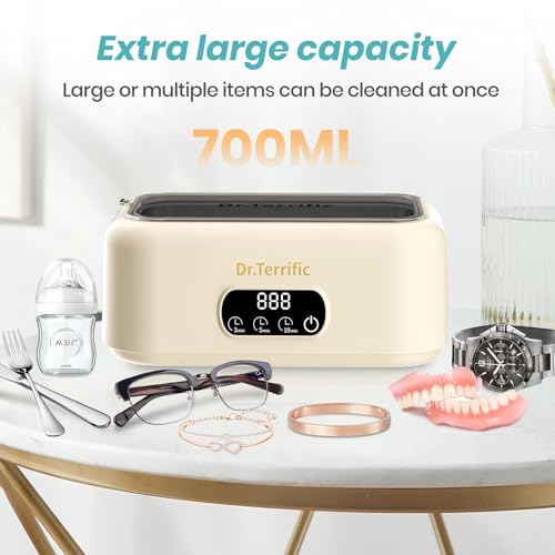 Ultrasonic Jewelry Cleaner, Extra-Large Cavity, 700ml,48000Hz Ultrasonic Cleaner Machine for Jewelry, Eyeglasses, Rings, Watch,Three Cleaning Modes, Latest Model Machine,M9B201
