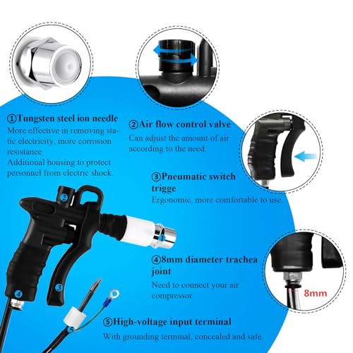 Saladulce Ionizing Air Gun 10KV Antistatic Air Gun Anti Static Ionizer + High Voltage Generator for Industrial Electrostatic Elimination (110V)