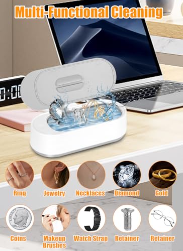 Nagobi Ultrasonic Jewelry Cleaner, Small Portable, Sonic Cleaner Machine for Diamond, Necklace, Coins, Watch Straps, 42 KHz, 6 Oz, White