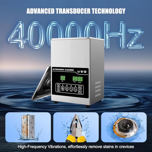 ??Deep Cleaning Power? 40kHz Ultrasonic Frequency + 60W Power & 100W Heater dissolve tough grime in jewelry, eyeglasses, and tiny parts. Gentle yet effective – safe for diamonds, watches, and delicate electronics.