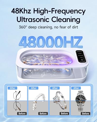Ultrasonic Jewelry Cleaner Machine, 48KHz Ring Ultrasonic Cleaner, 4 Cleaning Modes – Suitable for Eyeglasses, Jewelry, Rings, Watchbands, Braces, Dentures, 13.5oz 304 Stainless Steel Tank for Gift
