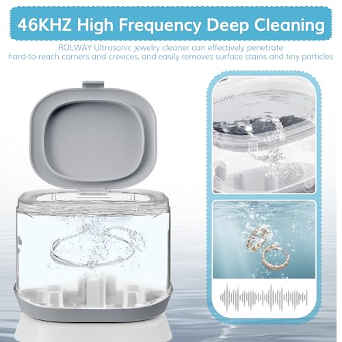 Ultrasonic Jewelry Cleaner, ROLWAY 48KHz 220ML Jewelry Cleaner Machine, Sonic Cleaner for Cleaning Diamond, Rings, Gold, Silver Jewelry, Earrings