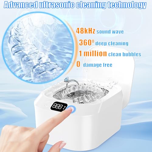 Easy to Use & Suitable for Home: The ultrasonic cleaner uses button control, making it extremely simple to operate. Place dental instruments, dentures, jewelry immersion in water, then press the button to start the device after selecting the cleaning time. Wait 180-480s, and then retrieve the clean and shiny items. The portable design allows the ultrasonic cleaner to be placed in a suitcase. This ultrasonic denture cleaner is the perfect gift for family and friends
