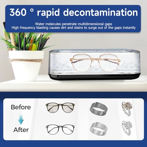 Powerful 48kHz Ultrasonic Cleaning:Our ultrasonic cleaner machine uses a powerful 48kHz high-frequency, Its perfect as a jewelry, eyeglasses cleaner, watch cleaner, or nail tool cleaner, effectively removing oils, dust, and residues without damaging delicate surfaces.Restore the original shine of your valuables with ease and efficiency—no need for harsh scrubbing or chemicals.This professional-grade ultrasonic cleaning machine is ideal for home or salon use.