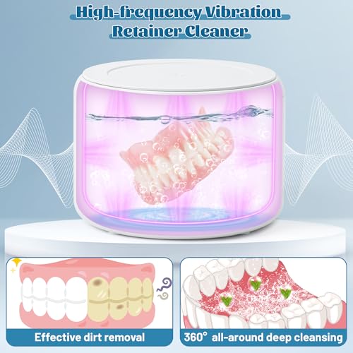 [Healthier & Deeper Cleaning] Our cleaner uses high-frequency sound technology to easily penetrate hard-to-reach crevices. It provides full and deep 360-degree coverage of braces, dentures, retainers, orthodontic appliances and mouth guards, thoroughly cleans the surface of retainers and small crevices, removes dirt and maintains oral hygiene without causing any harm. It is also suitable for jewellery, rings, watch bands and other delicate items.