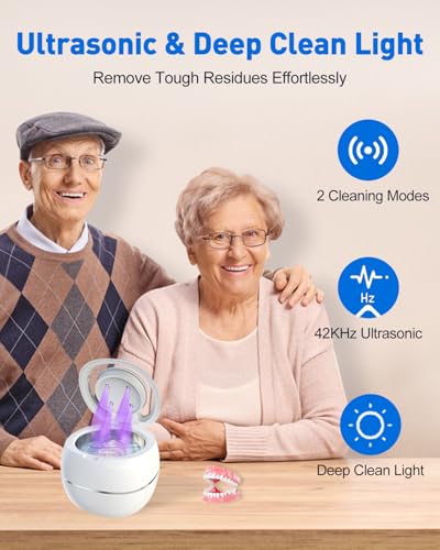Ultrasonic Denture Cleaner, Ultra Sonic Retainer Cleaner Machine for Dentures, Mouth Guards, Braces, Toothbrush, Electronic Rapid Retainer Nightguards Denture Bath Pod with Digital Timer (White)